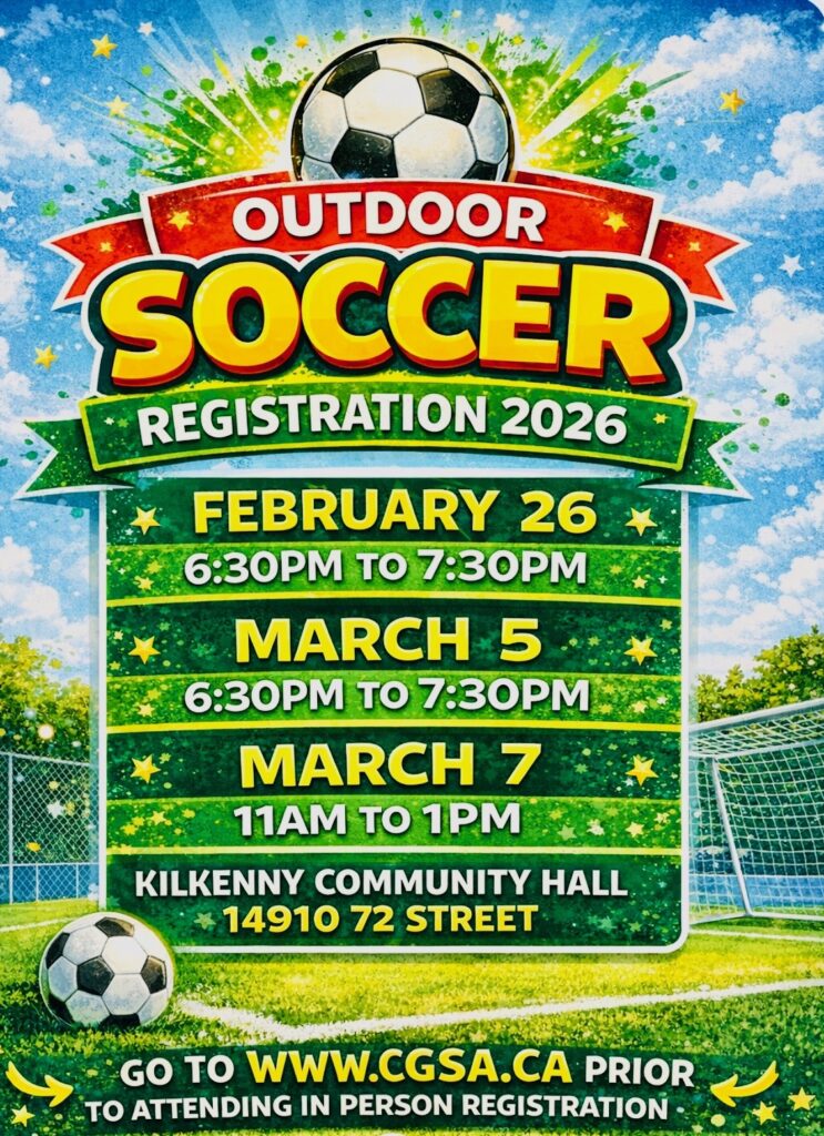 Registration OPENS February 1st, 2026 at www.cgsa.ca using the following link: http:kilkennycommunitysoccer.rampregistrations.com/